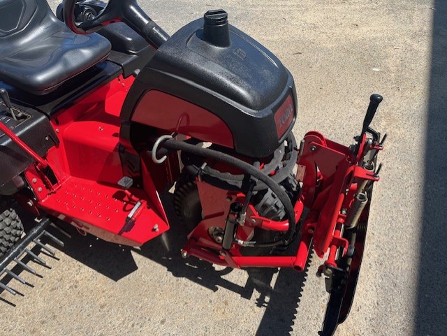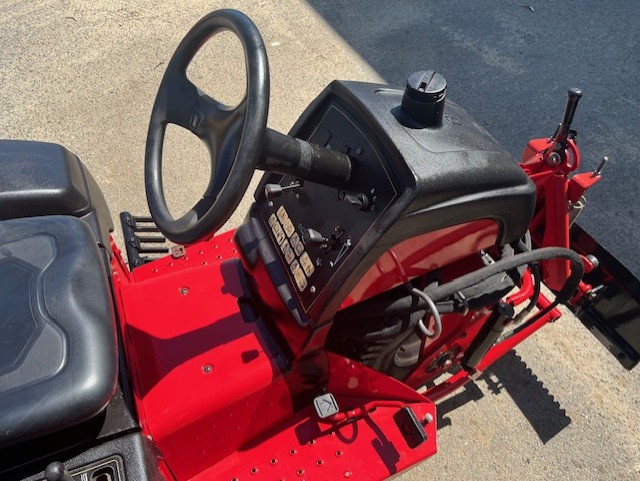 | Controls | Hand operated choke, throttle, and hydraulic control for raising/lowering with float. Foot pedal controls traction forward/reverse speed. Rear hydraulic lift and lower controls. |