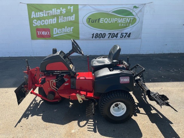 The Sand Pro® 5040 is the definition of versatility and function. The patented Quick Attach System™ (QAS) for front, mid and rear attachments allows for under-a-minute attachment changes. With a powerful 13.4kW engine and hydraulic power steering, be more productive with 17 attachments, including the Flex Blade which raises and lowers hydraulically. Each attachment was specifically designed to take the operator influence out of the equation for high performance and a consistent surface finish.