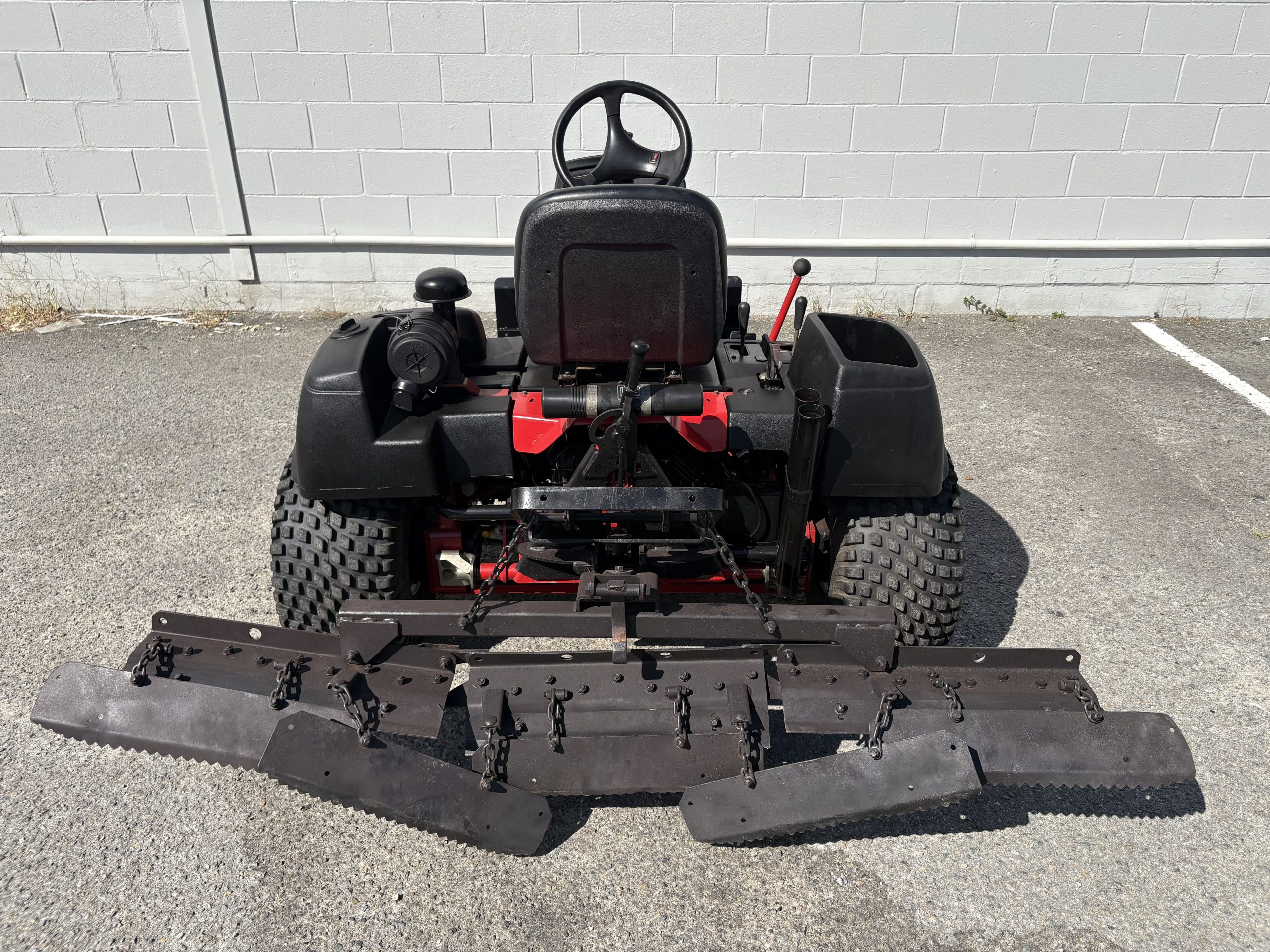 | Controls | Hand operated choke, throttle, and hydraulic control for raising/lowering with float. Foot pedal controls traction forward/reverse speed. Rear hydraulic lift and lower controls. |