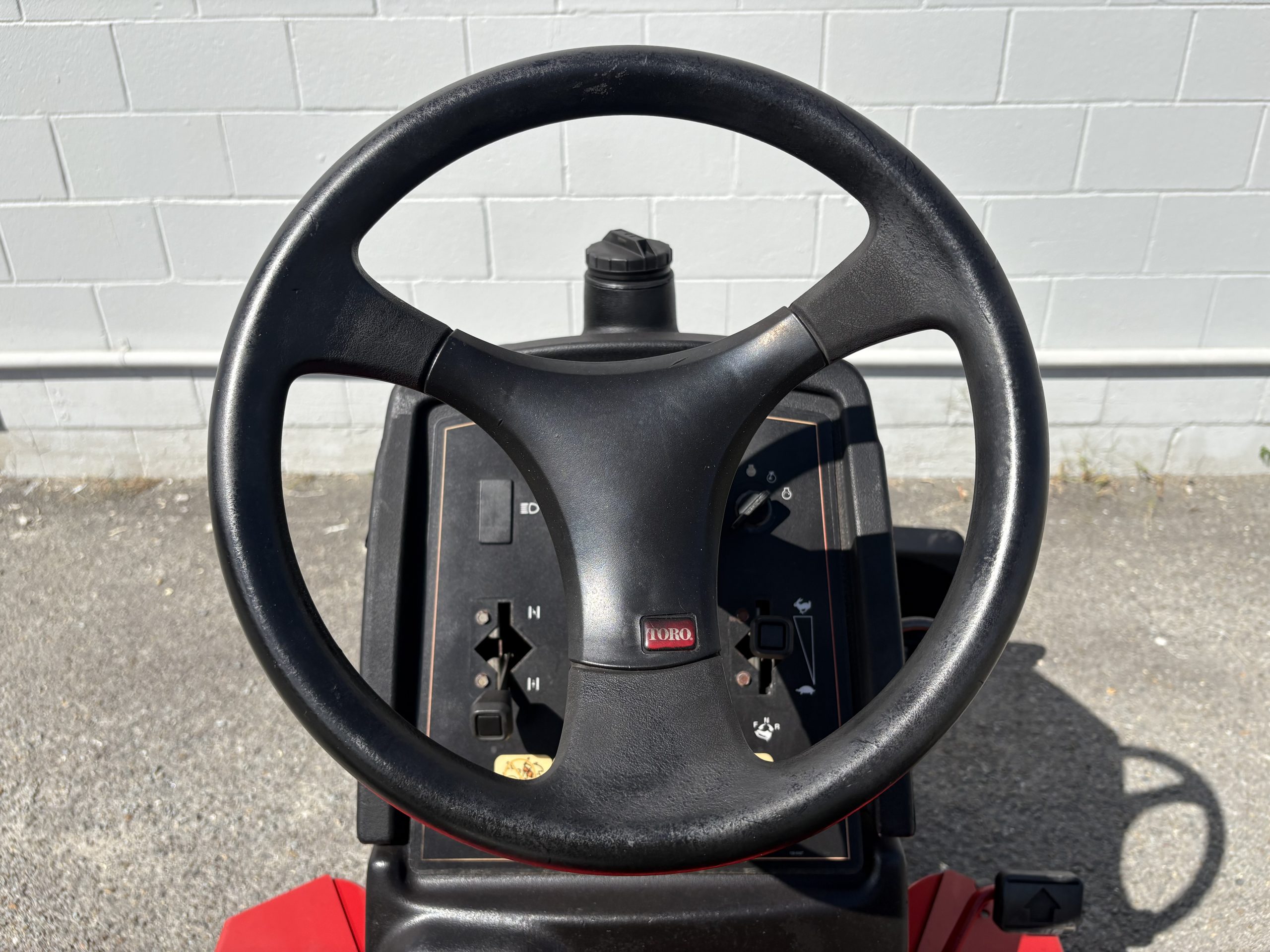 | Drive system | Direct driven hydrostatic variable displacement piston pump to 3 hydraulic motors for 3WD. Large, front mounted hydraulic cooler and fan. Foot pedal control, forward/reverse. Patented Series/Parallel hydraulic traction system keeps three wheels working together, virtually eliminates spin-outs. |
