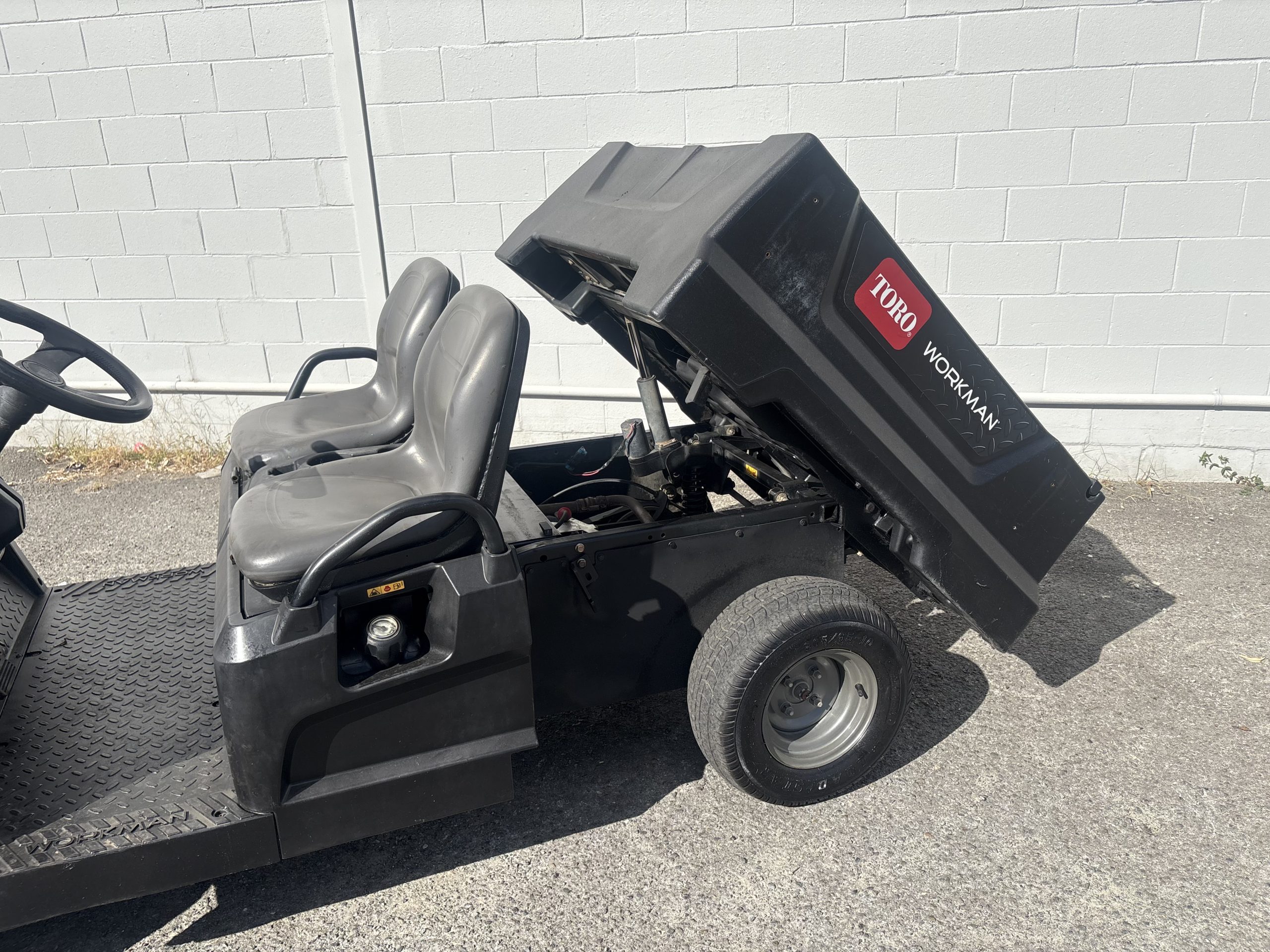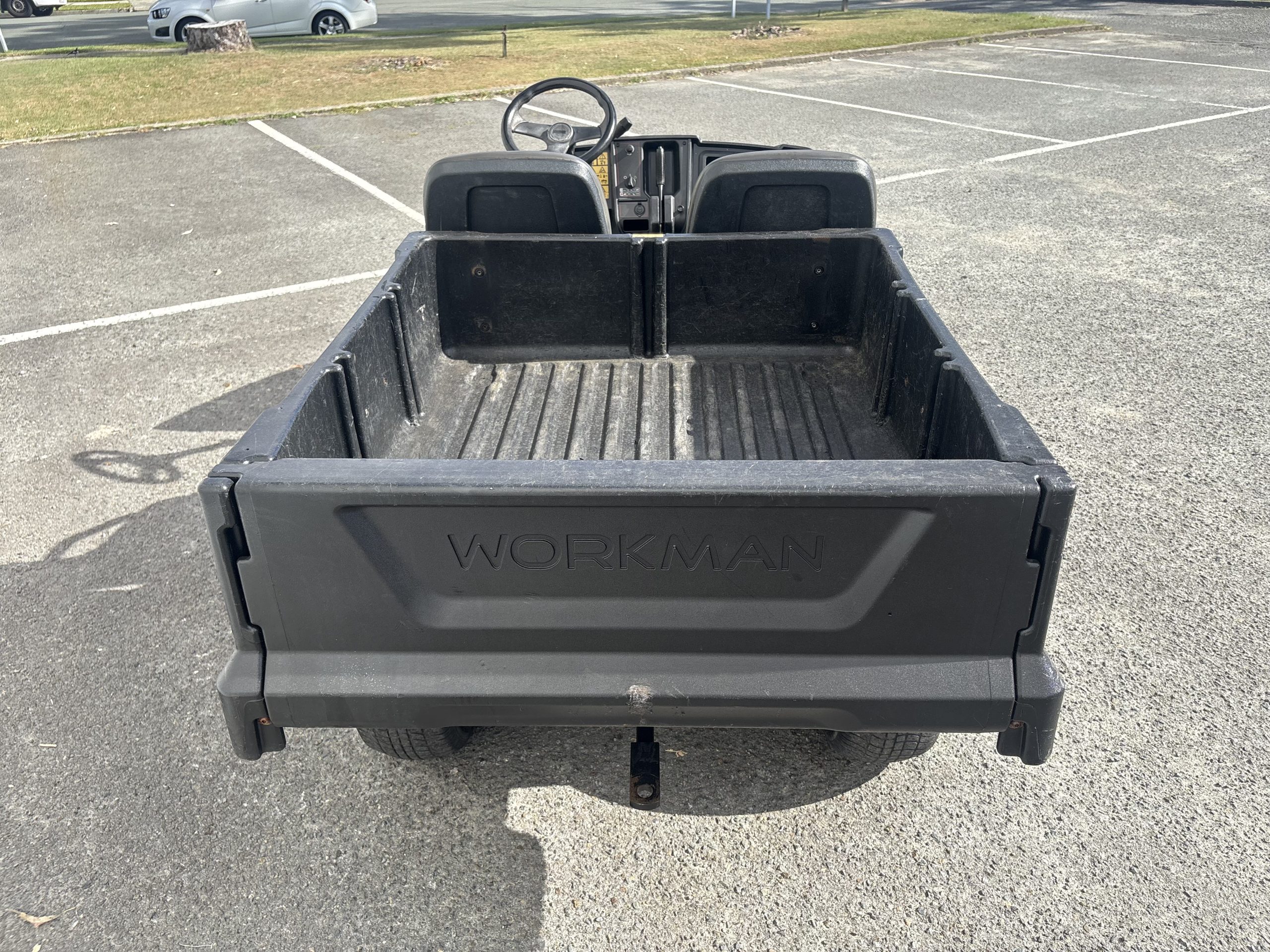 | Optional Accessories | Canopy, solid folding windshield, 4-seat configuration, flat bed, 6-foot flat bed, bed sides, storage box, trash can mount, bed racking, electric bed lift, brush guard, 12V outlet, brake/tail/signal lights, ROPS certified hard cab, back up alarm kit, parking brake alarm kit, all-terrain tire kit, 2-post ROPS kit, beverage cart, range cage, glass windshield and medical-bed. |